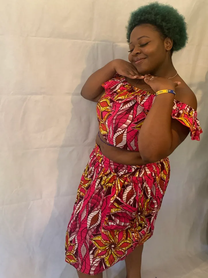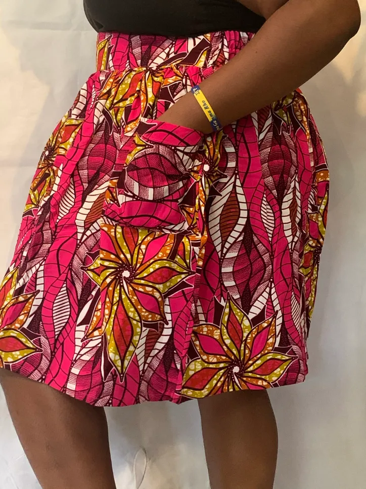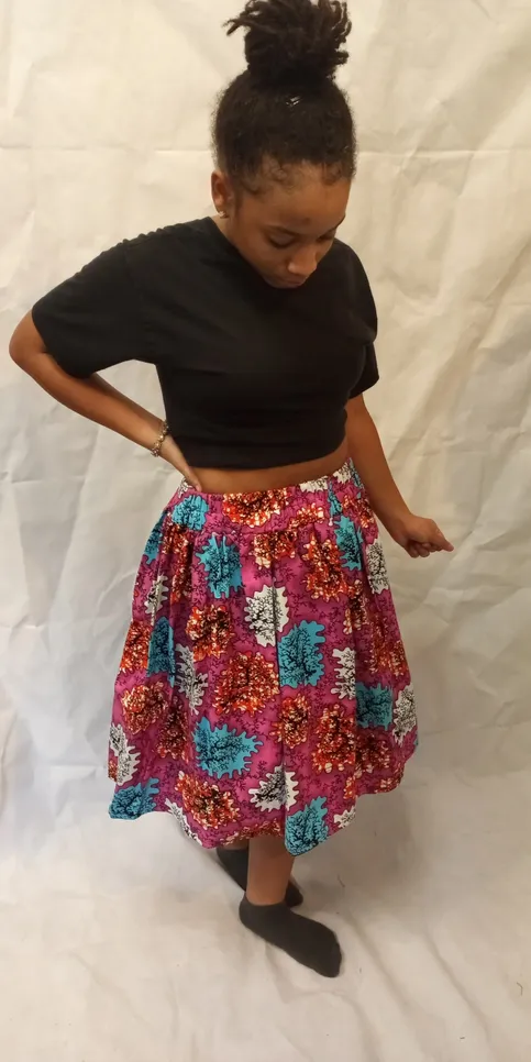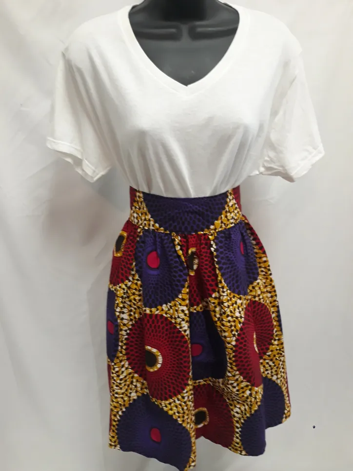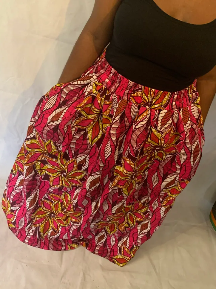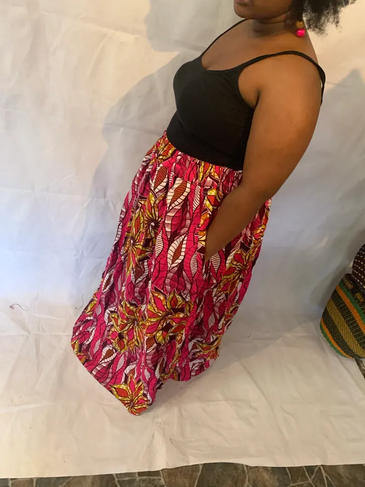 Beautiful Handmade 100% cotton African Maxi Skirt in a gorgeous vibrant 100% cotton African print with 2 1/2 inch elastic high waistband.