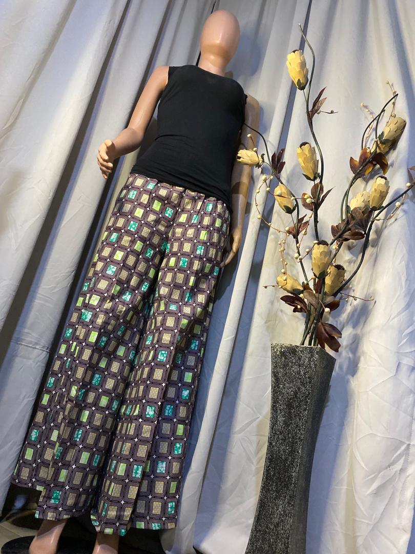 This Wide Leg Pallazo Pants is a show stopper, with Stylish and bold, these Palazzo Pants are a unique addition to any wardrobe. Stylish and bold, these Palazzo Pants are a unique addition to any wardrobe. The comfortable, palazzo-style pants have wide legs. They come with two convenient pockets. Made with 100% cotton. Wash in cold water.